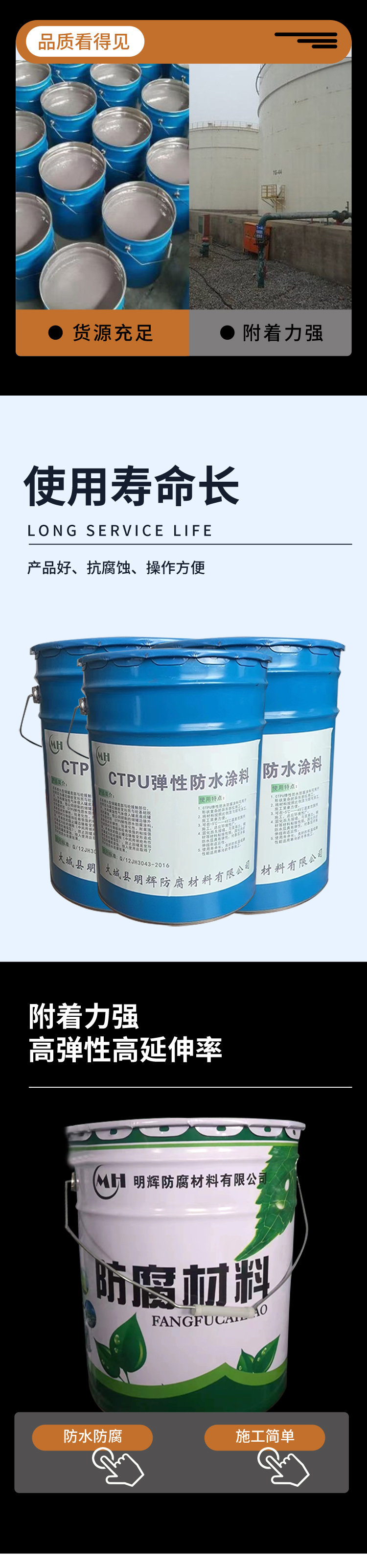 ctpu弹性胶 底胶面胶胶泥 储罐边缘外专用涂料 明辉
